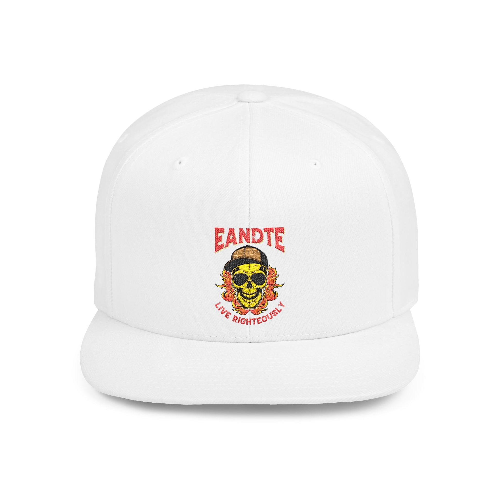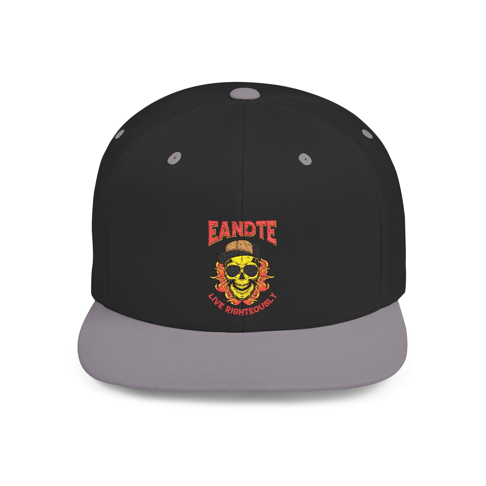 Skull Flame Flat Bill Snapback Hat — "Eadite Live Everywhere" Retro Streetwear